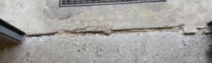 Der Bereich zwischen dem neuen Boden und der Eingangstüre ist derzeit eine Stolperfalle, wie das nächste Foto zeigt: